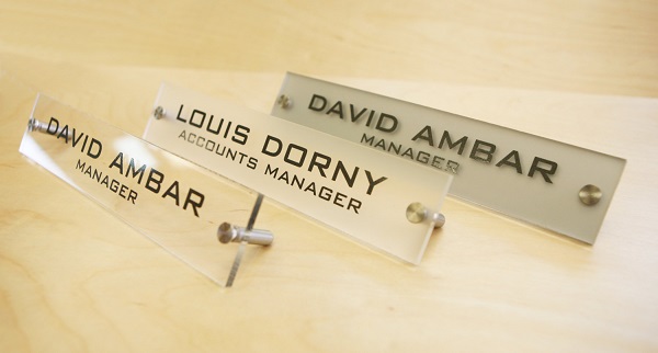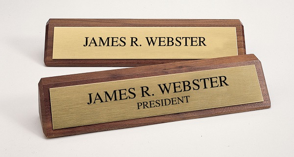 Biển chức danh là sản phẩm biển thể hiện tên, chức vụ, được đặt trên bàn làm việc. Thường thiết kế theo tông chung của công ty, và có sắc thái cá nhân riêng mỗi người.