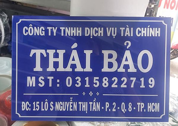 Không có quy định chính thức nào với biển tên công ty, thông thường biển chỉ cần hiển thị đầy đủ tên và địa chỉ doanh nghiệp.