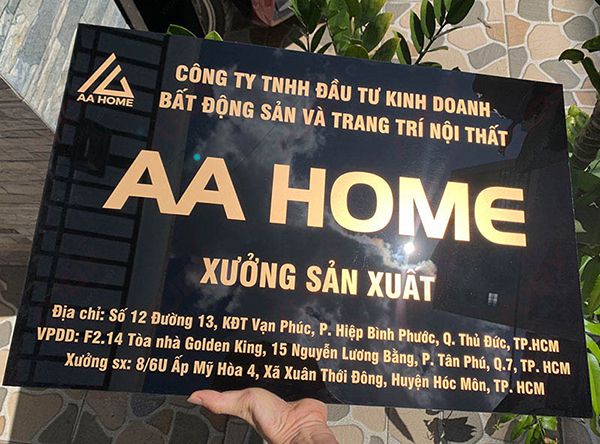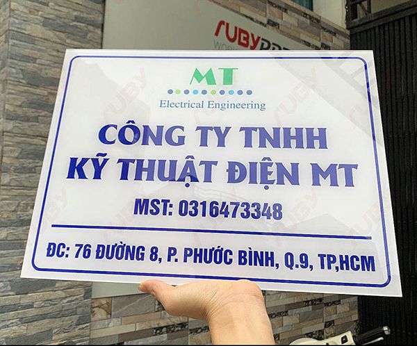 Mica là chất liệu rất phổ biến khi lựa chọn làm biển tên công ty. Giá thành rẻ, đặc biệt là hoàn thiện cấp tốc là ưu điểm của hình thức này. Khi cần, sản phẩm của bạn có thể được lắp đặt hoàn thiện chỉ say 2-3h bao gồm cả thời gian di chuyển.